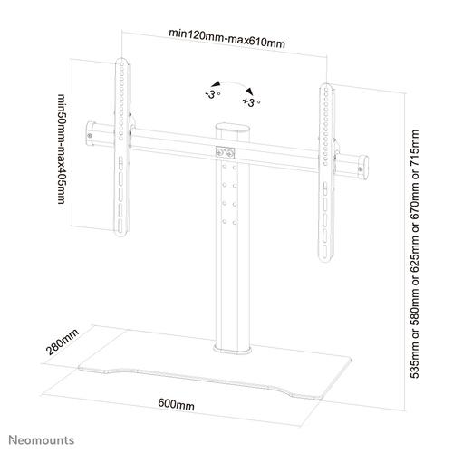Montage: Vrijstaand, Maximale gewichtscapaciteit: 40 kg, Minimale schermgrootte: 81,3 cm (32″), Maximale schermgrootte: 152,4 cm (60″), Montage interface compatibiliteit (min): 200 x 200 mm, Montage interface compatibiliteit (max): 600 x 400 mm.