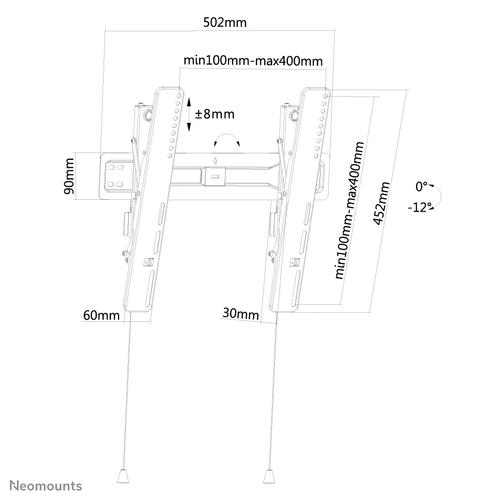 Bereik kantelhoek: 0 – 12°, Afstand tot de muur (min): 3 cm, Afstand tot de muur (max.): 3 cm.