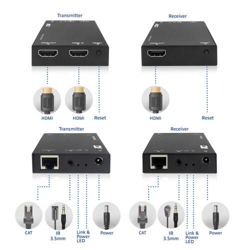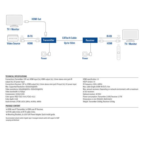 ACT HDMI over IP Extender Set, via CAT5e en hoger, 150 meter.