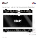CLUB3D 8-poorts HDMI™ splitter 1 to 8 Full 3D and 4K60Hz(600MHz).