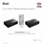 CLUB3D 3 to 1 HDMI™ 8K60Hz/4K120Hz Switch.