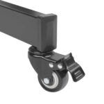 De stevige metalen standard heeft wieltjes met remsysteem voor het verplaatsen van de standaard naar de gewenste plaats.