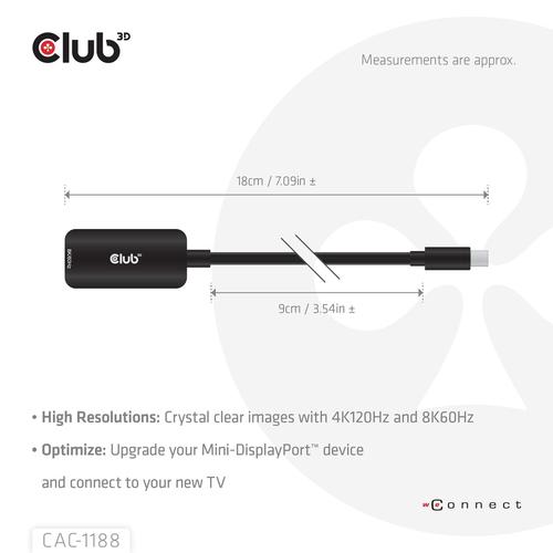 CLUB3D Mini DisplayPort™ 1.4 to HDMI™ 8K60Hz M/F Adapter.
