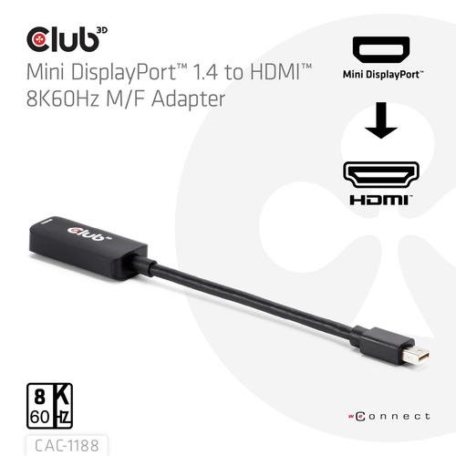 CLUB3D Mini DisplayPort™ 1.4 to HDMI™ 8K60Hz M/F Adapter