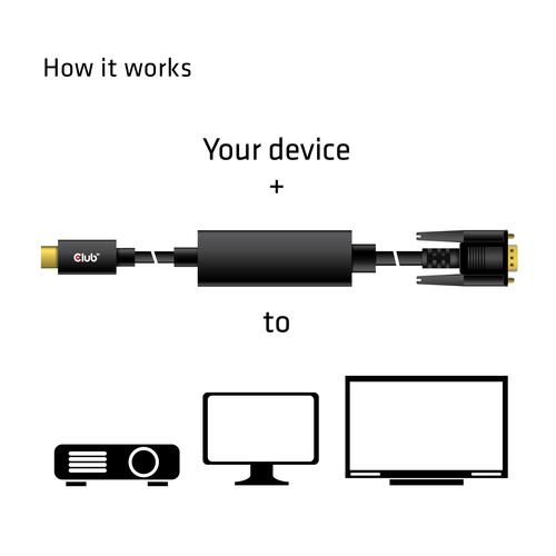 CLUB3D USB Type C to VGA Active Cable M/M 5m/.