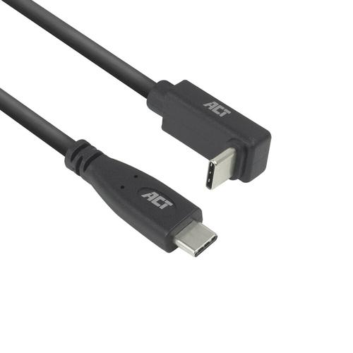 ACT USB 3.0 10Gbps 60W USB Type-C (recht) naar USB Type-C (haaks boven/beneden) kabel, 2 meter.