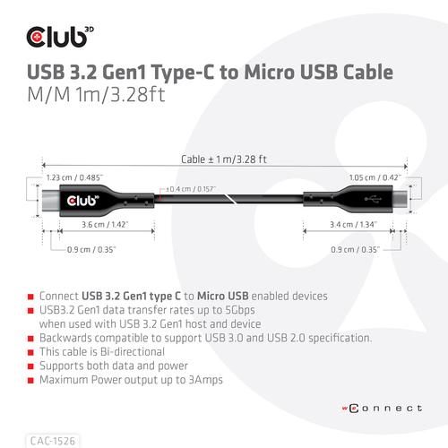CLUB3D USB 3.2 Gen1 Type-C to Micro USB Cable M/M 1m /3.28ft
