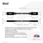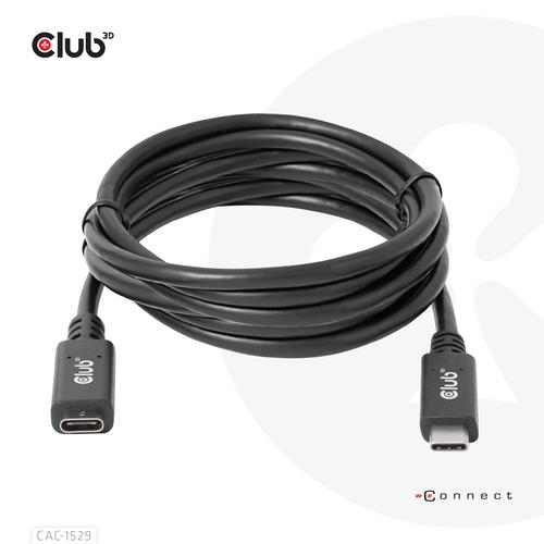 CLUB3D USB Gen1 Type-C Extensie kabel 5Gbps 60W(20V/3A) 4K60Hz M/F 2m/6.56ft
