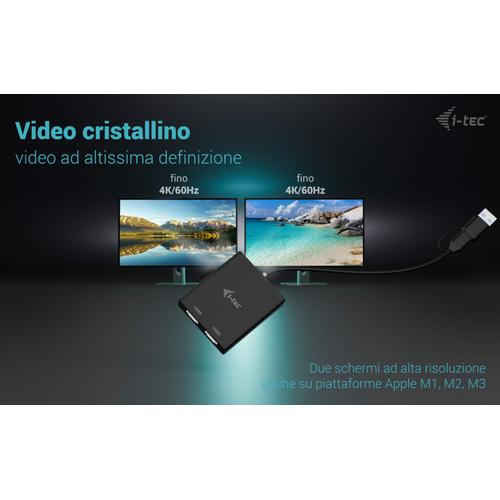 i-tec USB-A/USB-C Dual 4K/60 Hz HDMI Video Adapter