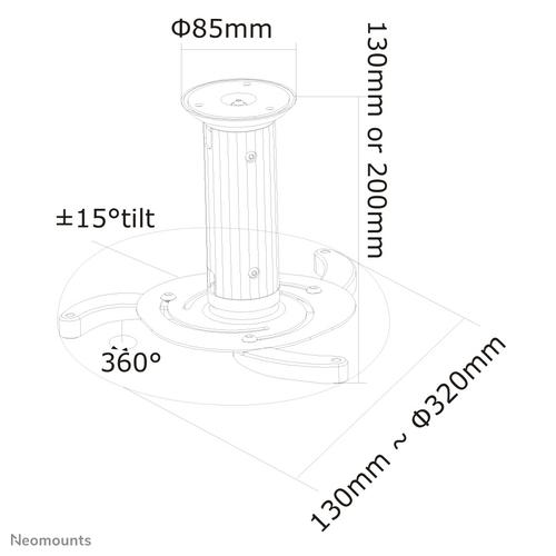 Neomounts BEAMER-C80WHITE Beamer plafondbeugel – h 13-20 cm – full motion.