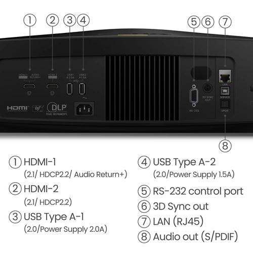 Projector helderheid: 2600 ANSI lumens, Projectietechnologie: DLP, Projector native resolution: UHD 4K (3840×2160).