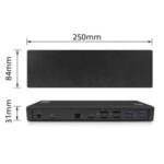 Het docking station is uitgerust met een Gigabit LAN netwerkpoort, een microfoonaansluiting en een hoofdtelefoonaansluiting.