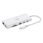 Hostinterface: USB 3.2 Gen 1 (3.1 Gen 1) Type-C, Hub-interfaces: RJ-45, USB 3.2 Gen 1 (3.1 Gen 1) Type-A, USB 3.2 Gen 1 (3.1 Gen 1) Type-C, Compatibele geheugenkaarten: MicroSD (TransFlash), SD.