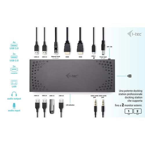 i-tec USB 3.0 / USB-C / Thunderbolt Dual Display Docking Station + Power Delivery 100W.