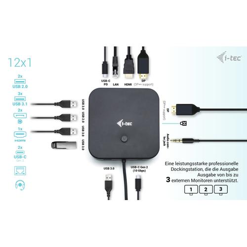 i-tec USB-C HDMI Dual DP Docking Station with Power Delivery 100 W + Universal Charger 100 W.
