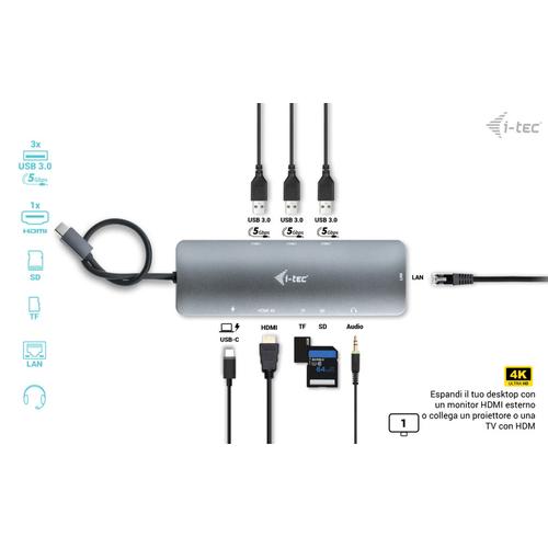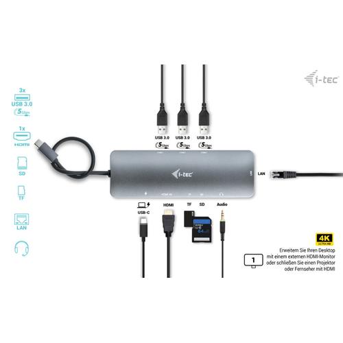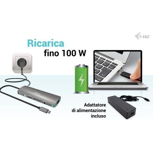 i-tec USB-C Metal Nano Docking Station 4K HDMI LAN with Power Delivery 100W + Universal Charger 100W.