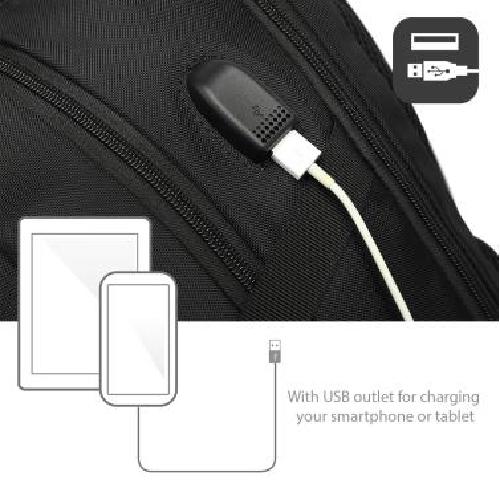 Je laadt je smartphone op terwijl je onderweg bent.Geschikt voor dagelijks gebruikDe Global Laptop Rugzak is geschikt voor dagelijks gebruik dankzij het gevoerde rugpaneel, verstelbare schouderbanden, compressiebanden en trolley band.