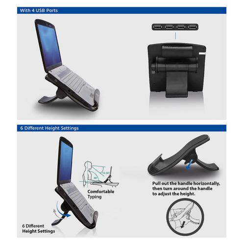 ACT Laptopstandaard, hoogte verstelbaar in 6 standen, 4-poorts hub