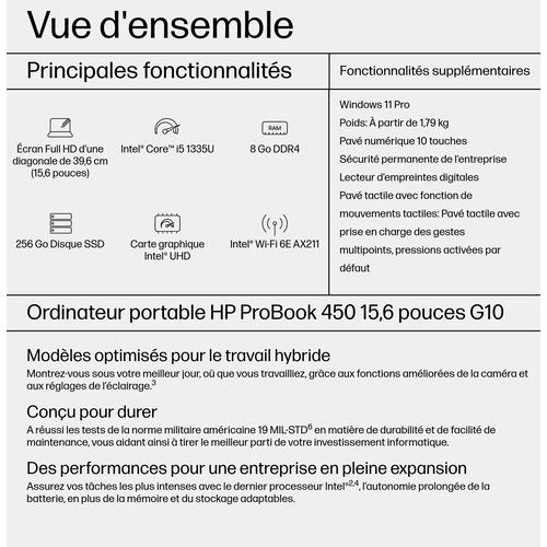 HP ProBook 450 G10 Intel® Core™ i5 i5-1335U Laptop 39,6 cm (15.6″) Full HD 8 GB DDR4-SDRAM 256…