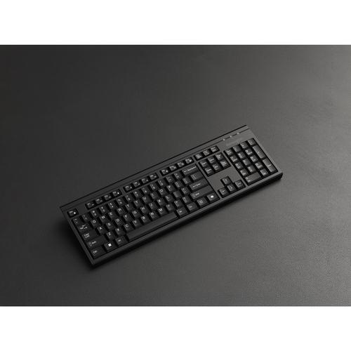 Toetsenbord formaat: Volledige grootte (100%), Connectiviteitstechnologie: Draadloos, Aansluiting: RF-draadloos + Bluetooth, Toetsenbord toetsschakelaar: Membraan keyswitch, Toetsenbordindeling: QWERTY, Aanbevolen gebruik: Kantoor.
