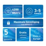 Wifi-band: Dual-band (2.4 GHz / 5 GHz), Wifi-standaard: Wi-Fi 6 (802.11ax), WLAN gegevensoverdrachtsnelheid (max): 4200 Mbit/s.