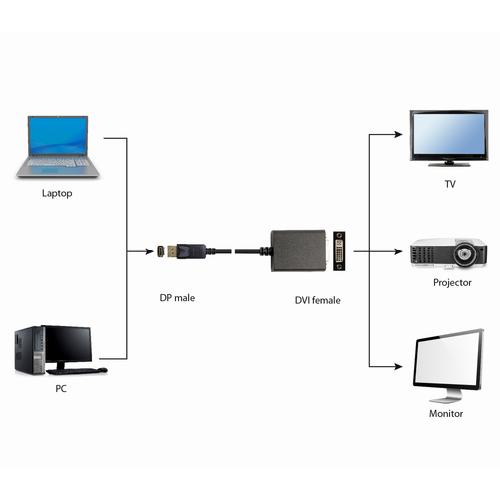 Snoerlengte: 0,1 m, Aansluiting 1: DisplayPort, Aansluiting 2: DVI.