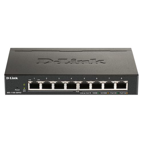 D-Link DGS-1100-08PV2 Managed L2/L3 Gigabit Ethernet (10/100/1000) Power over Ethernet (PoE) Zwart
