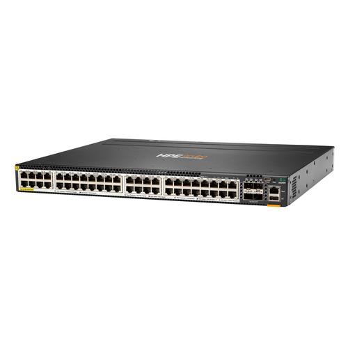 HPE Aruba Networking CX 6300M 48-port Smart Rate 1/2.5/5GbE Class 6 PoE and 4-port SFP56 Switch.