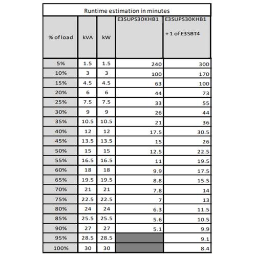 UPS-topologie: Dubbele conversie (online), Output power capacity: 30 kVA, Uitgangsvermogen: 30000 W.