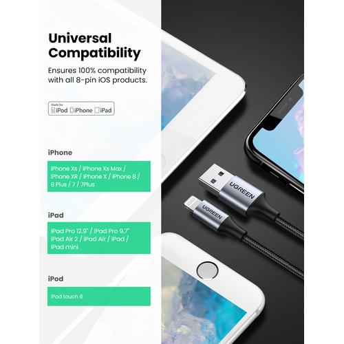 Ugreen 60161 Alu Case Braided Lightning Cable 1m.