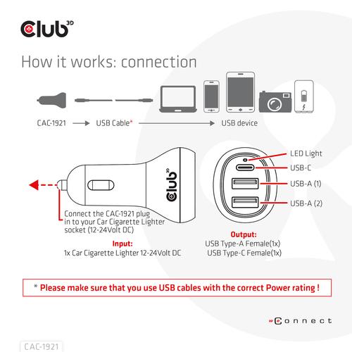 CLUB3D Notebook / Laptop Car Charger 36 Watt.