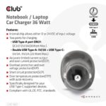 CLUB3D Notebook / Laptop Car Charger 36 Watt