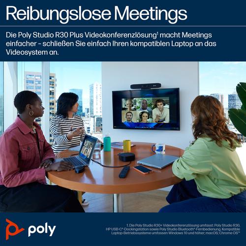HP Poly Studio R30 USB Video Bar and BT Remote with HP USB-C Dock G5 (ABB).
